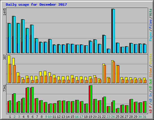 | Day | Hits | Files | Pages | Visits | Sites | kB F | kB In | kB Out | ||||||||
